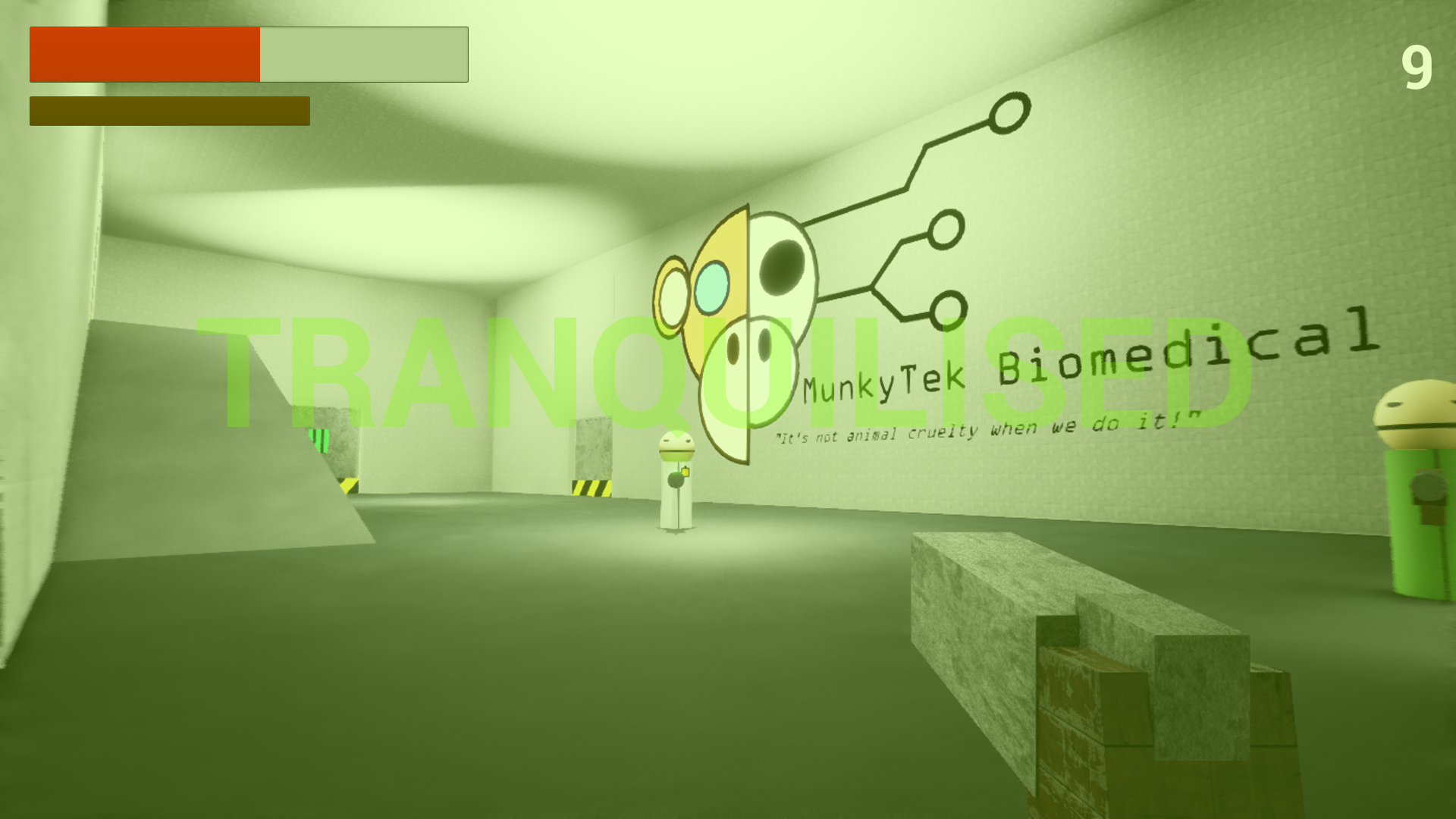 You are a monkey in captivity deep within the bowels of the MunkyTek Biomedical laboratory, cruelly experimented on by the science team. One day, you manage to escape, but the way out won't be easy. Using your innate primate skills, you must battle through hordes of unethical scientists and their gun-toting guards, leaping and shooting to avoid your own demise.